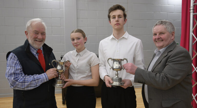 At Caol Community Centre on 19 March, trophies were presented to our winners, Quinn Strachan and Jack Bungey, junior and senior catergories respectively. President David and Pres-Elect John Stafford are shown with these impressive musicians above. Quinn’s selection, on piano